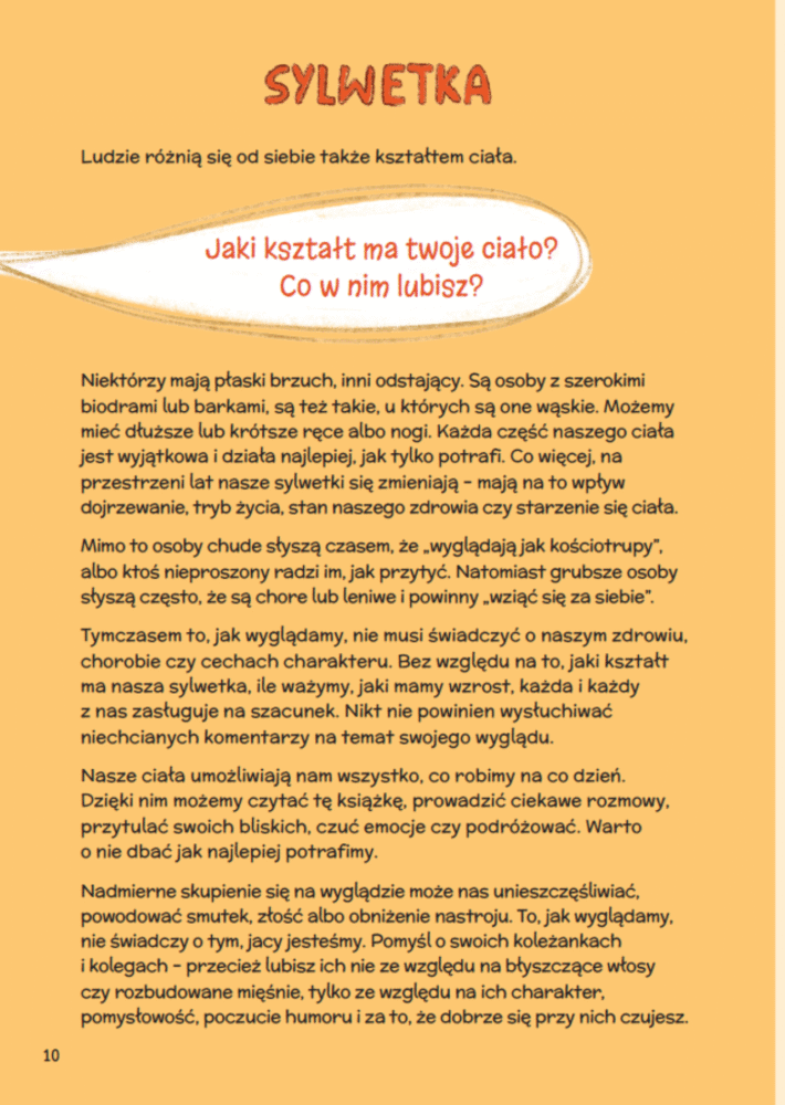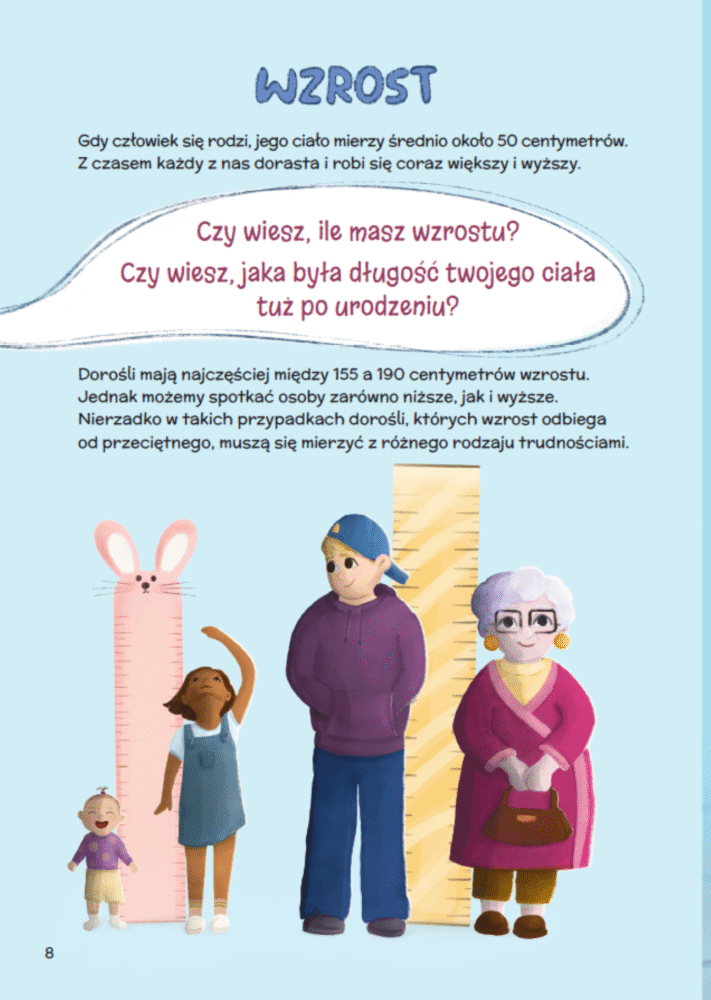 Książka została podzielona na rozdziały w taki sposób, by poruszyć różne aspekty ludzkiego życia – od różnic związanych z wyglądem aż po elementy dotyczące odmiennych kultur czy religii. Znajdziecie tu rzetelne odpowiedzi na wszystkie pytania zadawane przez młodych czytelników. A kolorowe ilustracje, dostosowane do dziecięcej wrażliwości, z pewnością ułatwią zrozumienie trudnych kwestii. Ta książka to nie tylko zaproszenie do poznania się i wspólnej rozmowy. To również wyjątkowa pozycja, która umożliwia spojrzenie na świat oczami dziecka.