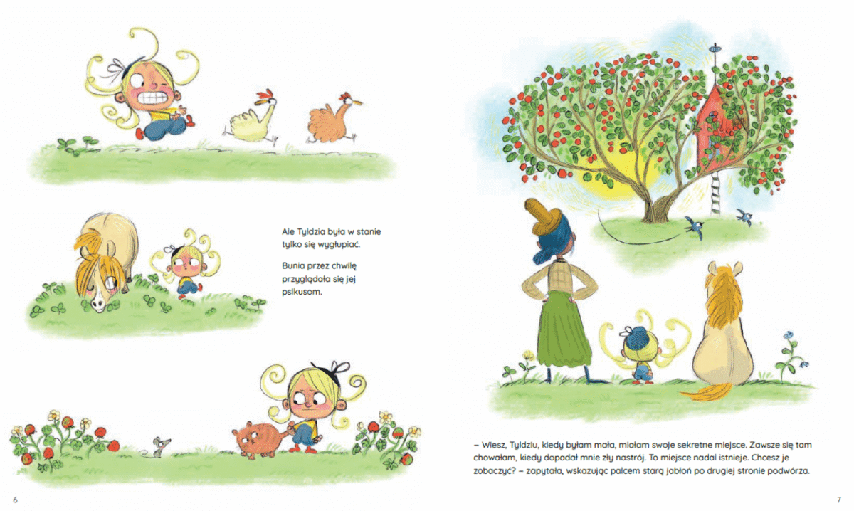 Tyldzia jest już duża. Na tyle duża, że może mieszkać sama i być niezależna. Dlatego oświadcza babciom, że od dzisiaj zamieszka w domku na drzewie, który znajduje się z tyłu podwórka.