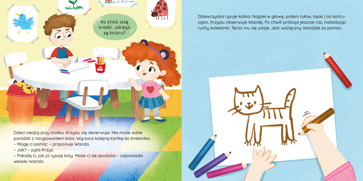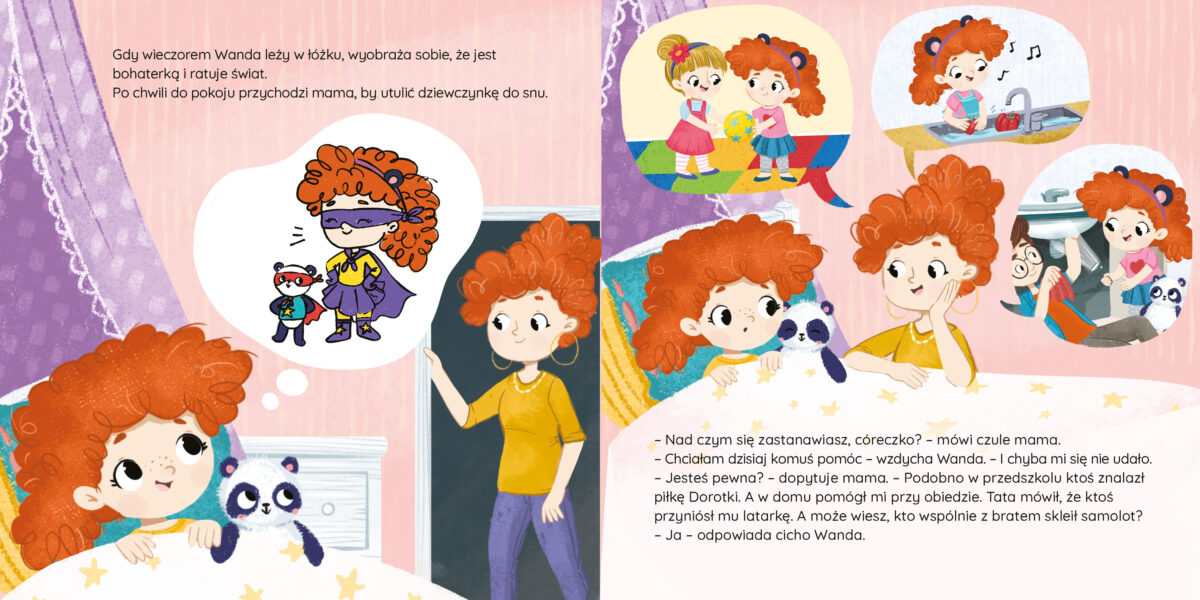 Wanda dowiaduje się, że pomaganie to coś więcej niż tylko praca strażaka czy lekarza. To także drobne gesty, ciepłe słowa i uważność na innych. W codziennym życiu każdy z nas może zrobić coś dobrego – wystarczy tylko chcieć!